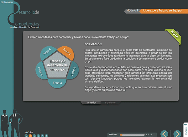Diseño de interfaces y desarrollo de materiales educativos y de entrenamiento para instituciones académicas o empresas, a través de cursos, talleres o diplomados a distancia.